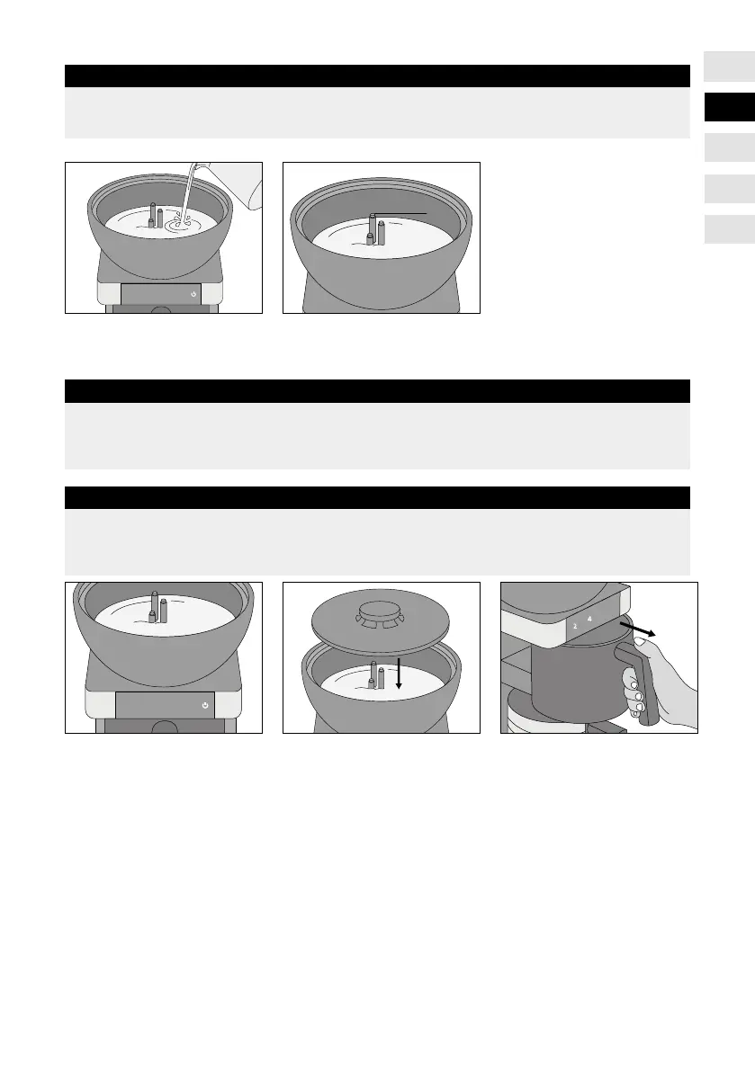 It is also possible to carefully pour water via the opening of the lid with a down-