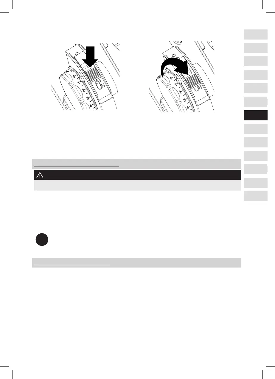 ● Tryk på udløserknappen til tommelfingerbeskytteren, og drej tommelfingerbeskytteren til
