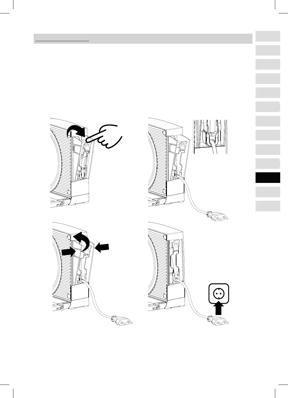 Ta støpselet ut av holderen og rull ut kabelen til ønsket lengde. Du kan feste kabelen i en