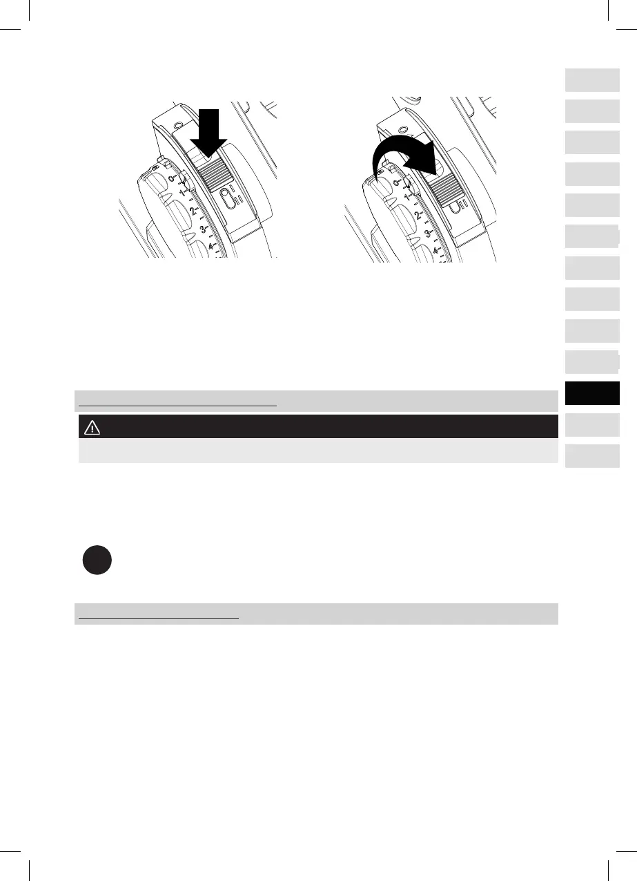 ● Trykk på utløserknappen for tommelbeskyttelsen og drei tommelbeskyttelsen til vannrett po-