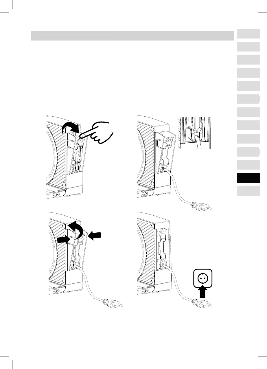 ● Достаньте вилку из держателя и размотайте кабель на желаемую длину. Кабель