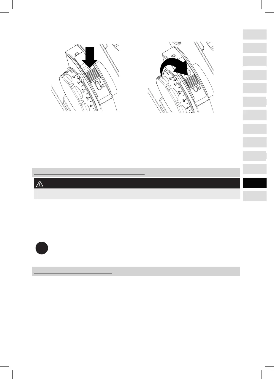 ● Нажмите кнопку разблокировки защиты большого пальца и поверните ее в