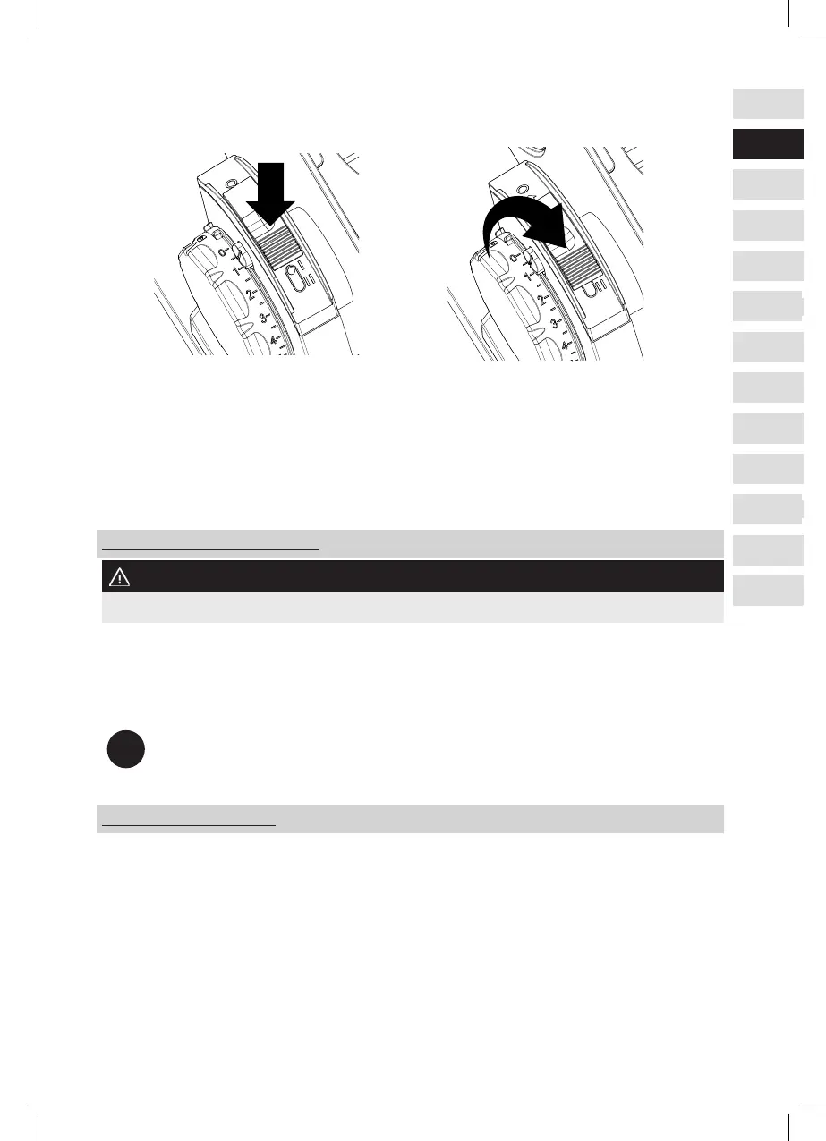 ● Press the release button for the thumb guard and swivel the thumb guard into the horizontal