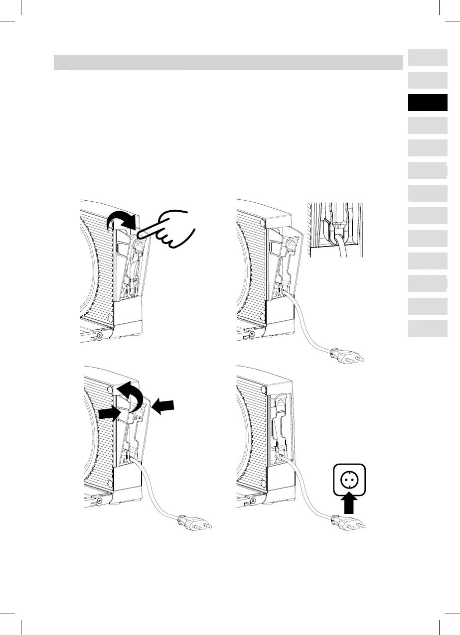 ● Appuyez légèrement sur les deux parois extérieures et faites pivoter l‘enrouleur de câble