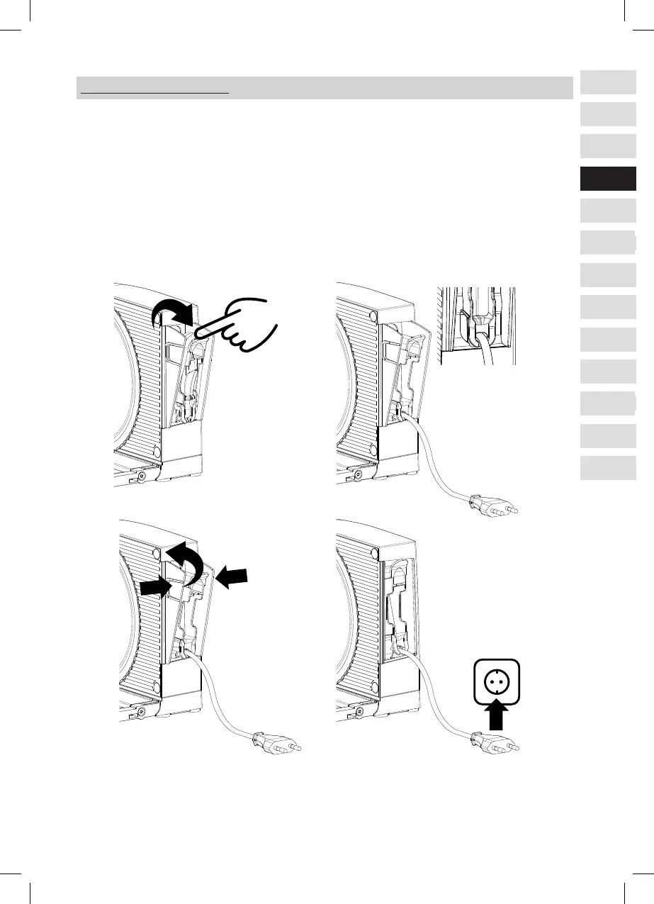 Haal de stekker uit de houder en rol het snoer af tot de gewenste lengte. U kunt het snoer