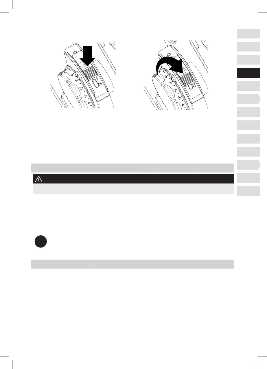 ● Druk de ontgrendelknop voor de duimbeschermer en draai de duimbeschermer naar de