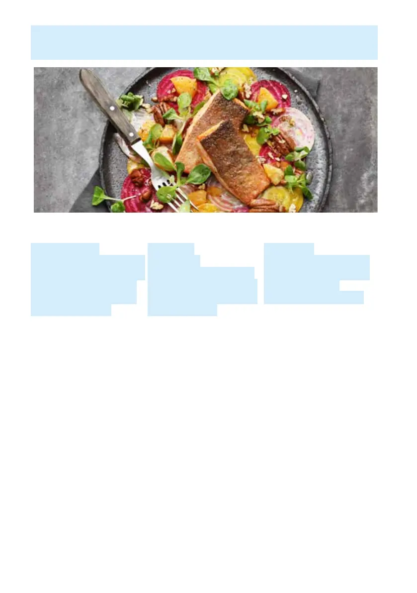 barbabietola e distribuirveli sopra. Infine, aggiungere due tranci di pesce a testa e servire