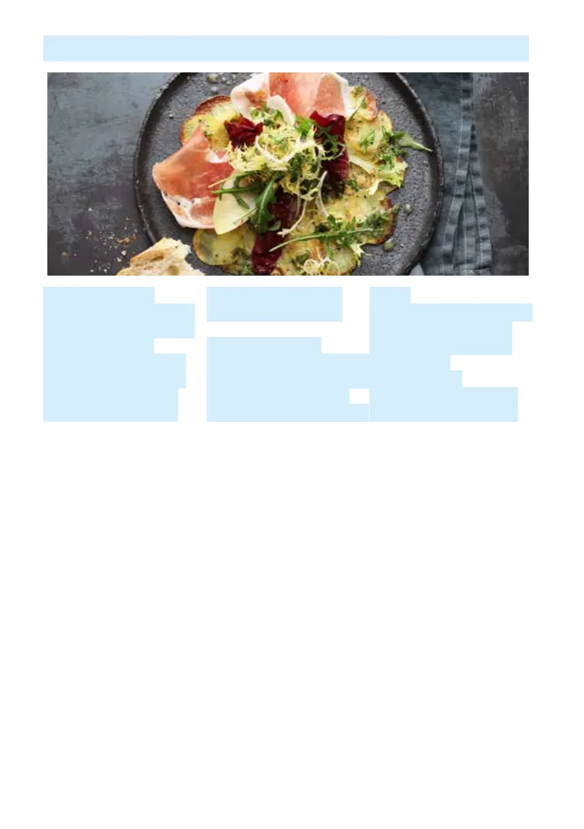 Carpaccio de pommes de terre avec jambon et salade frisée