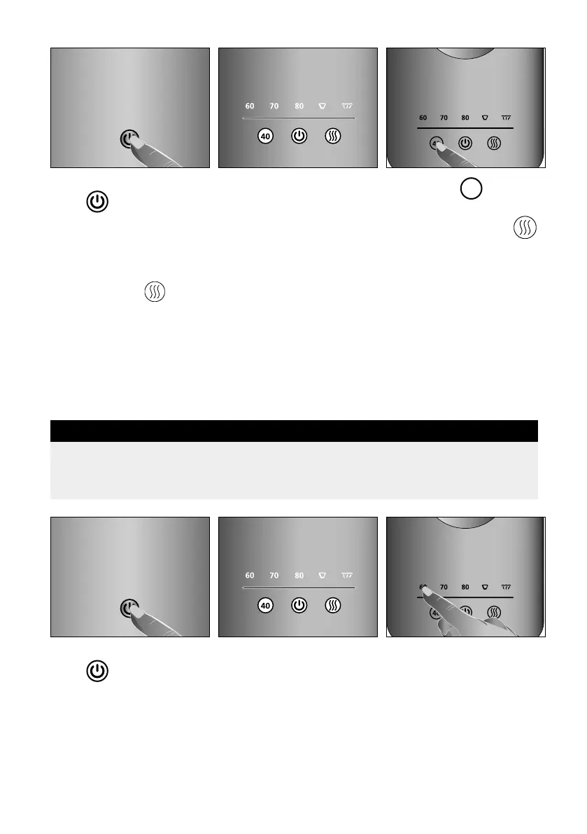 • The display lights up. • Touch the 60 deg. C but-