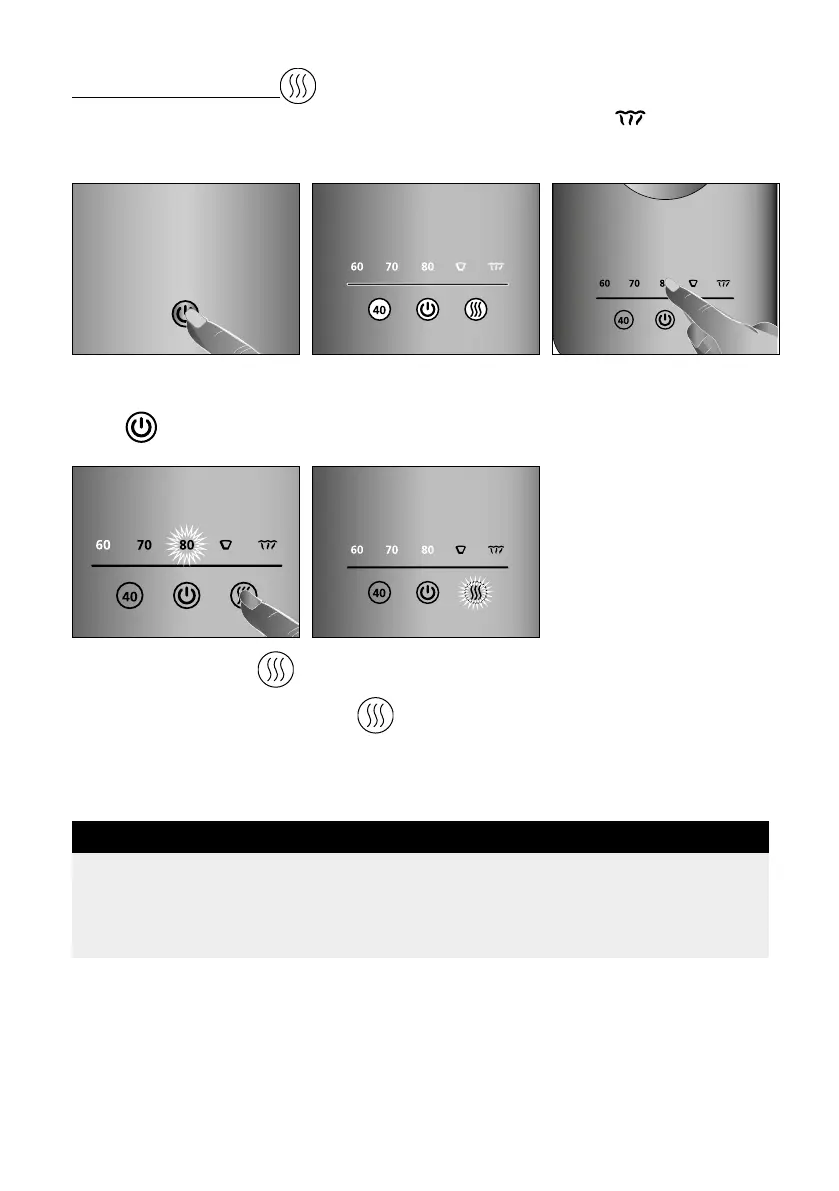 • Als de gewenste temperatuur is bereikt licht de