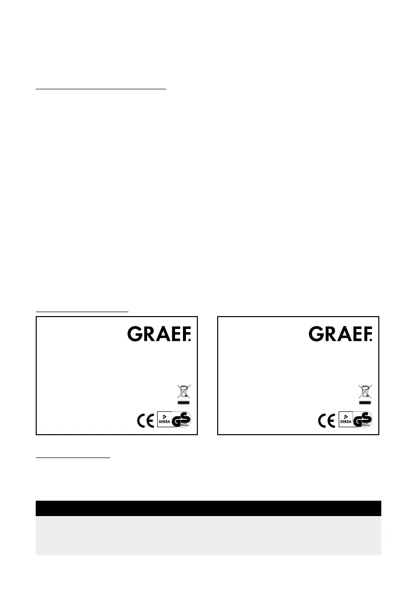 Sollte es vorkommen, dass Ihr Graef-Gerät einen Schaden hat, wenden Sie sich bit-