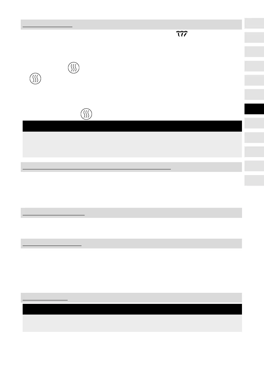 ● Efter aktivering vil temperaturvalget samt symbolet for varmefunktionen lyse.