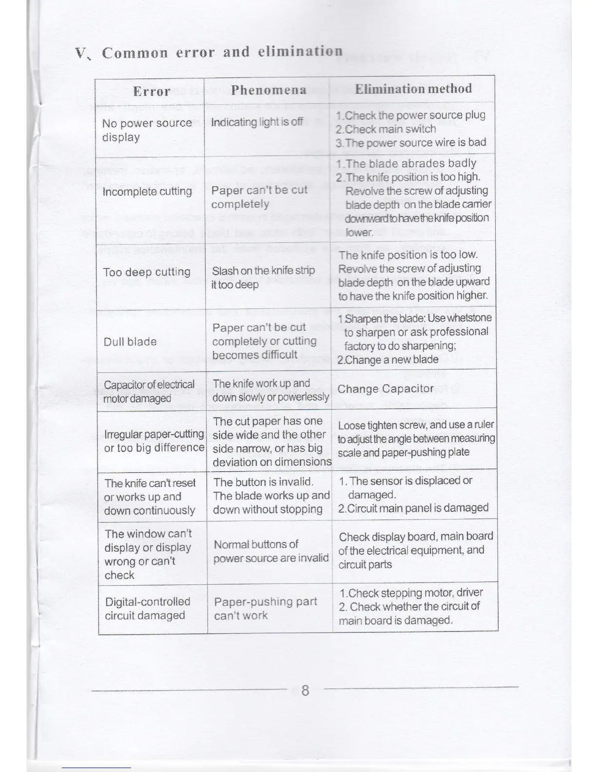 Grafalex 450VS+ - Common Errors and Troubleshooting; Power Display Issues; Cutting Inaccuracies; Blade and Motor Problems