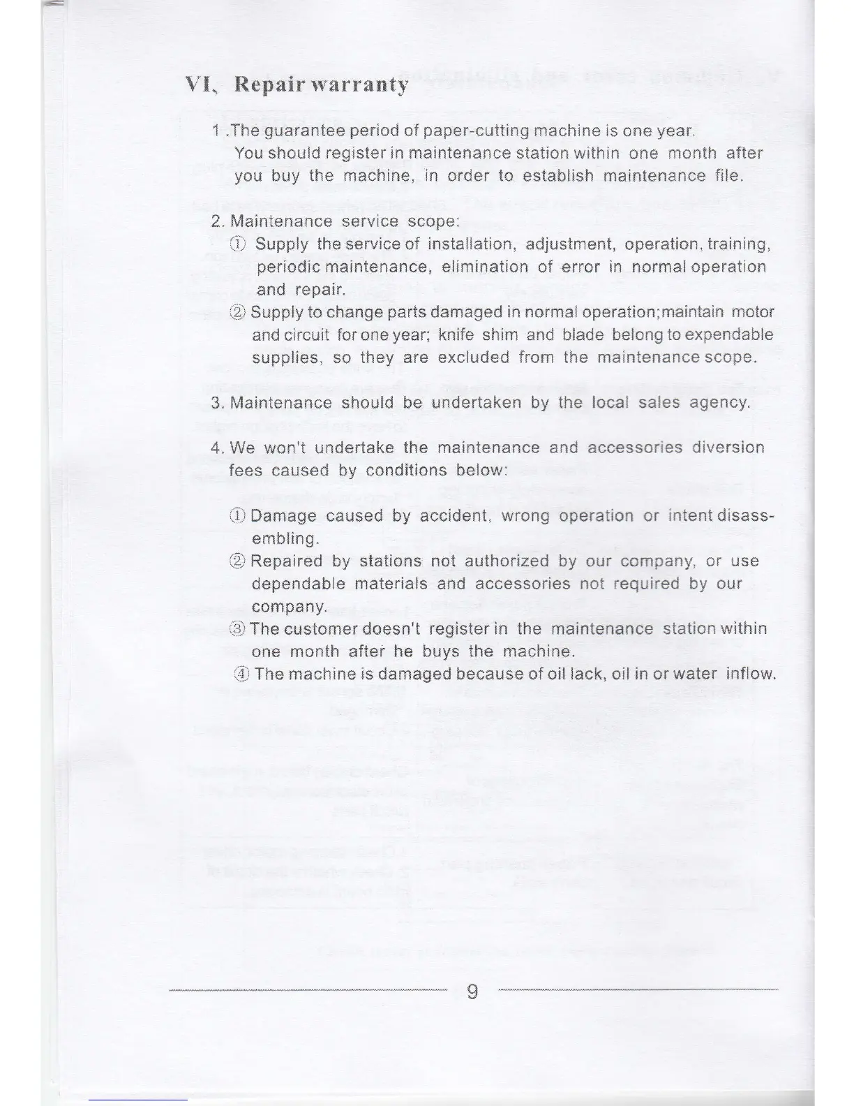 4,We wOn’t undertake the ma;ntenance and accessooes divers奋