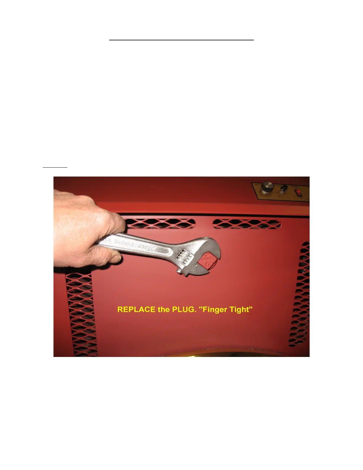 REMOVE THE PLUG ON THE FRONT OF THE STOVE