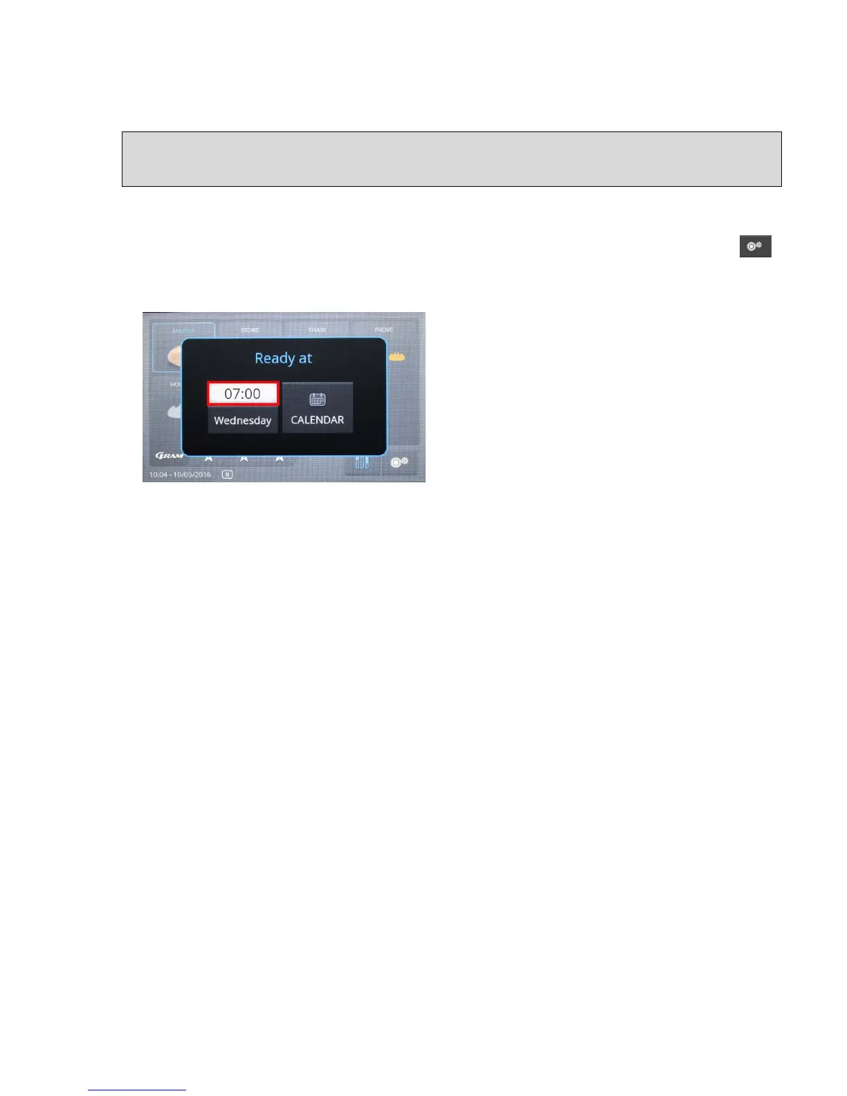 Further touching of the Master symbol opens a window with an ending time for the program