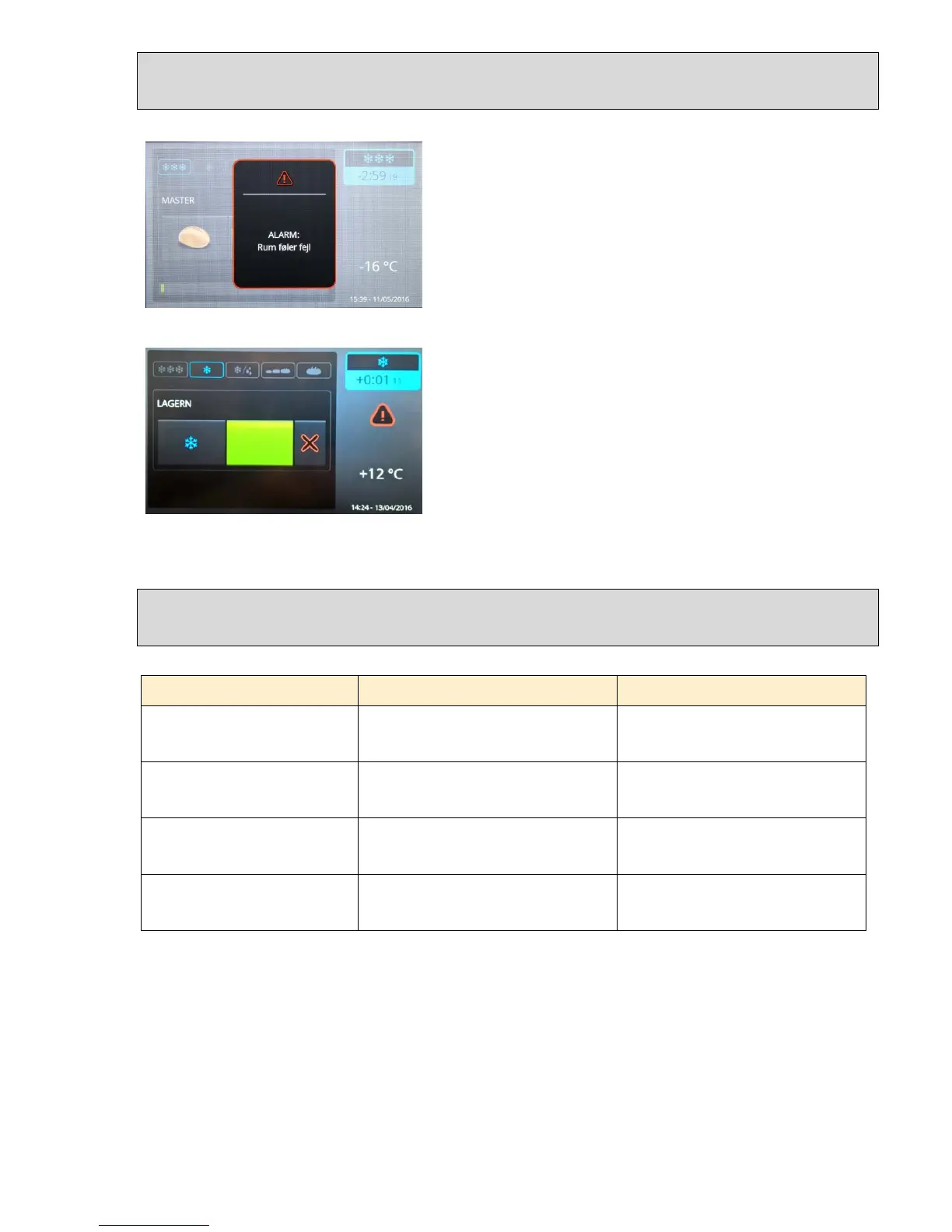 Alarm low temperature