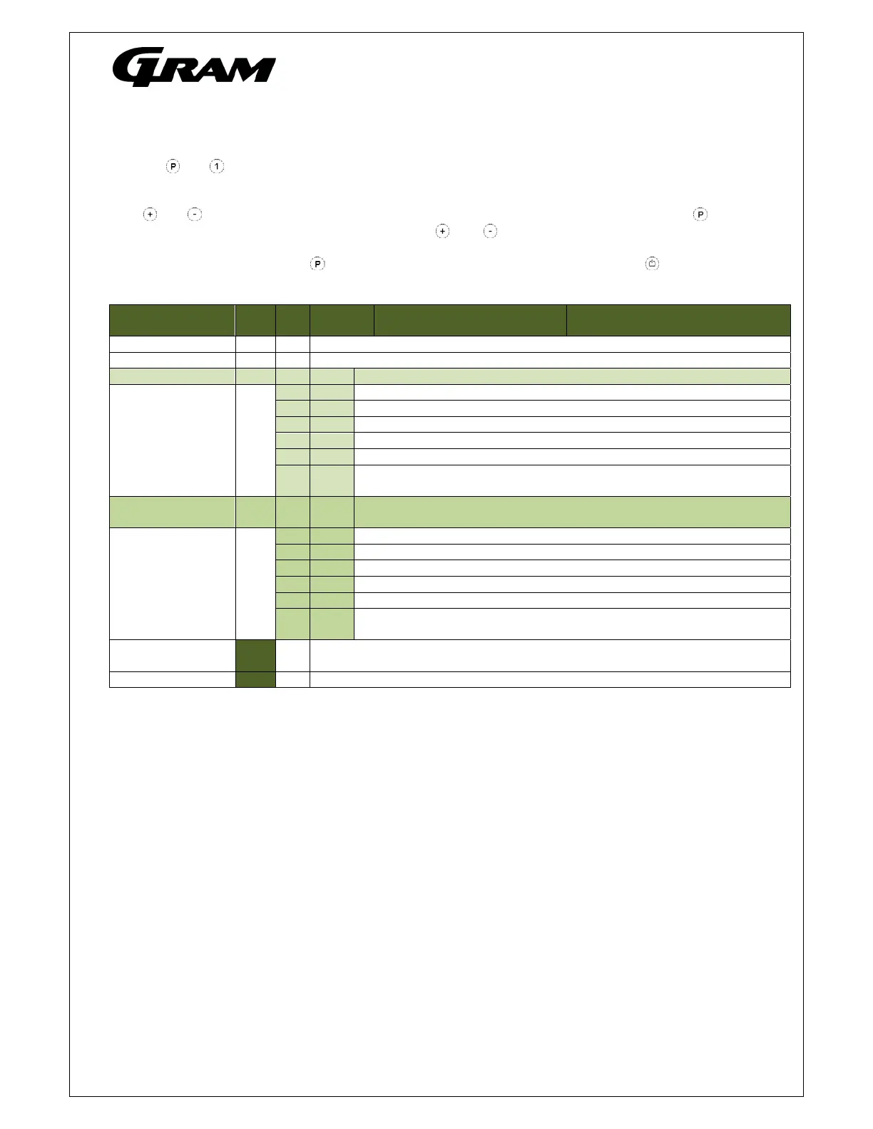 With and buttons its possible to look through each menu items in the “User menu”. Push on button