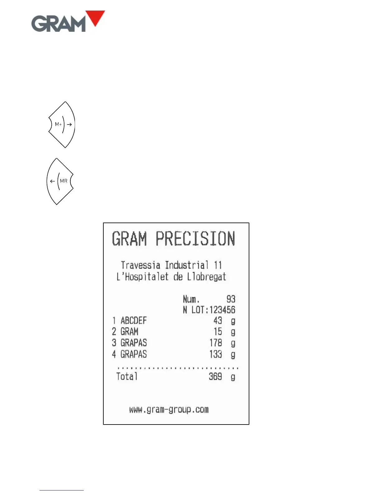 the ticket and press the M+ key. The weight shown on the display is