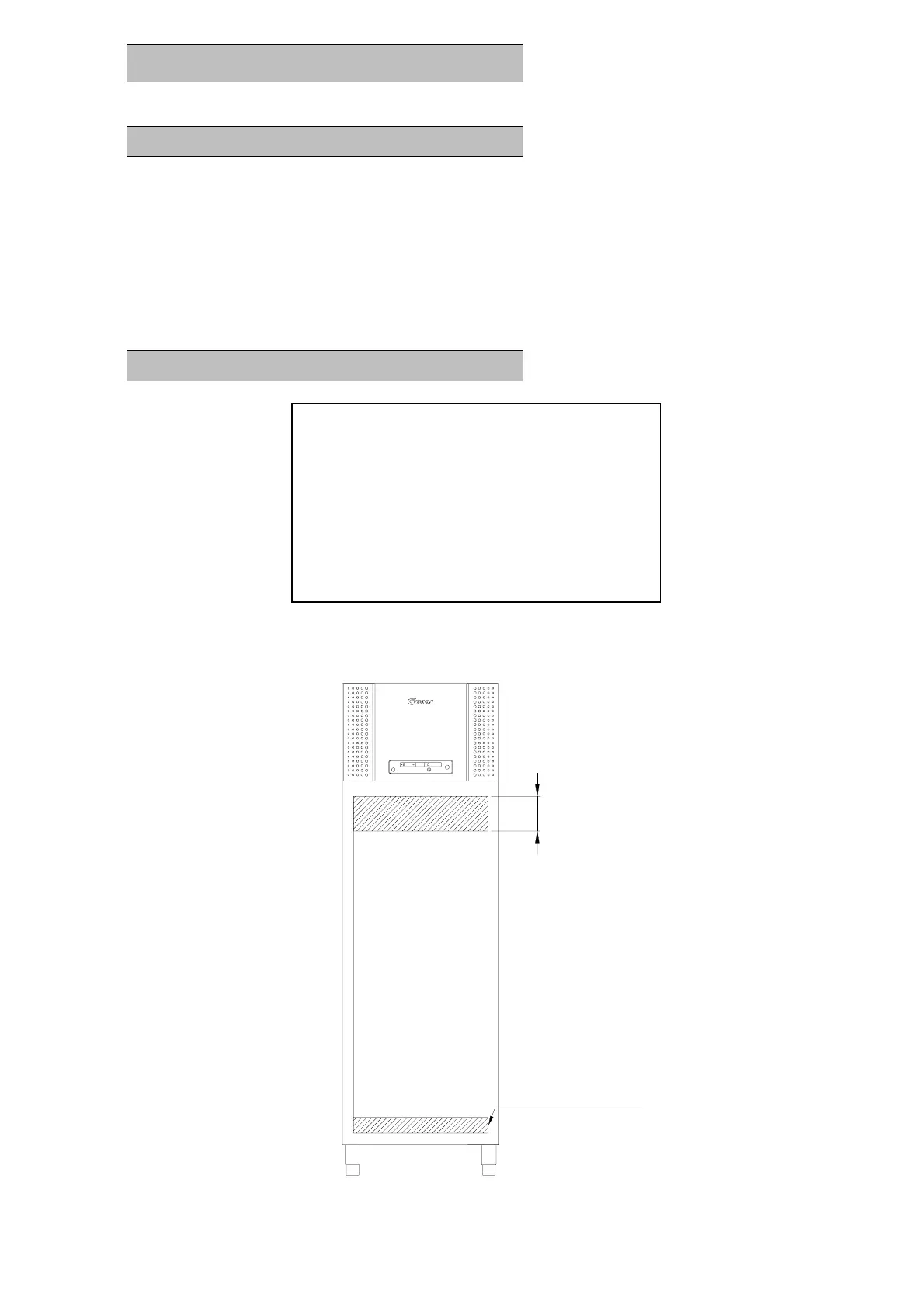 To ensure correct and efficient air flow in the cabinet, the hatched areas must be