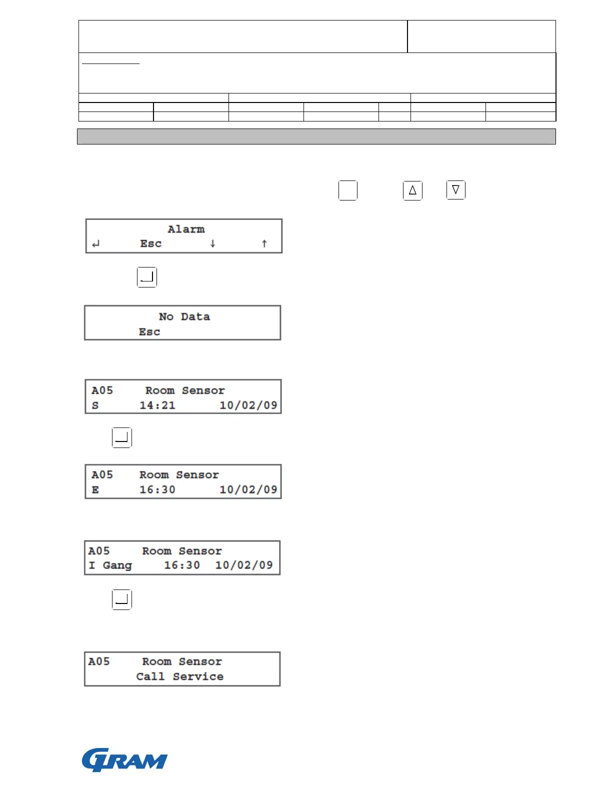 Then press to see the latest alarms. If no alarms are memorized the display shows: