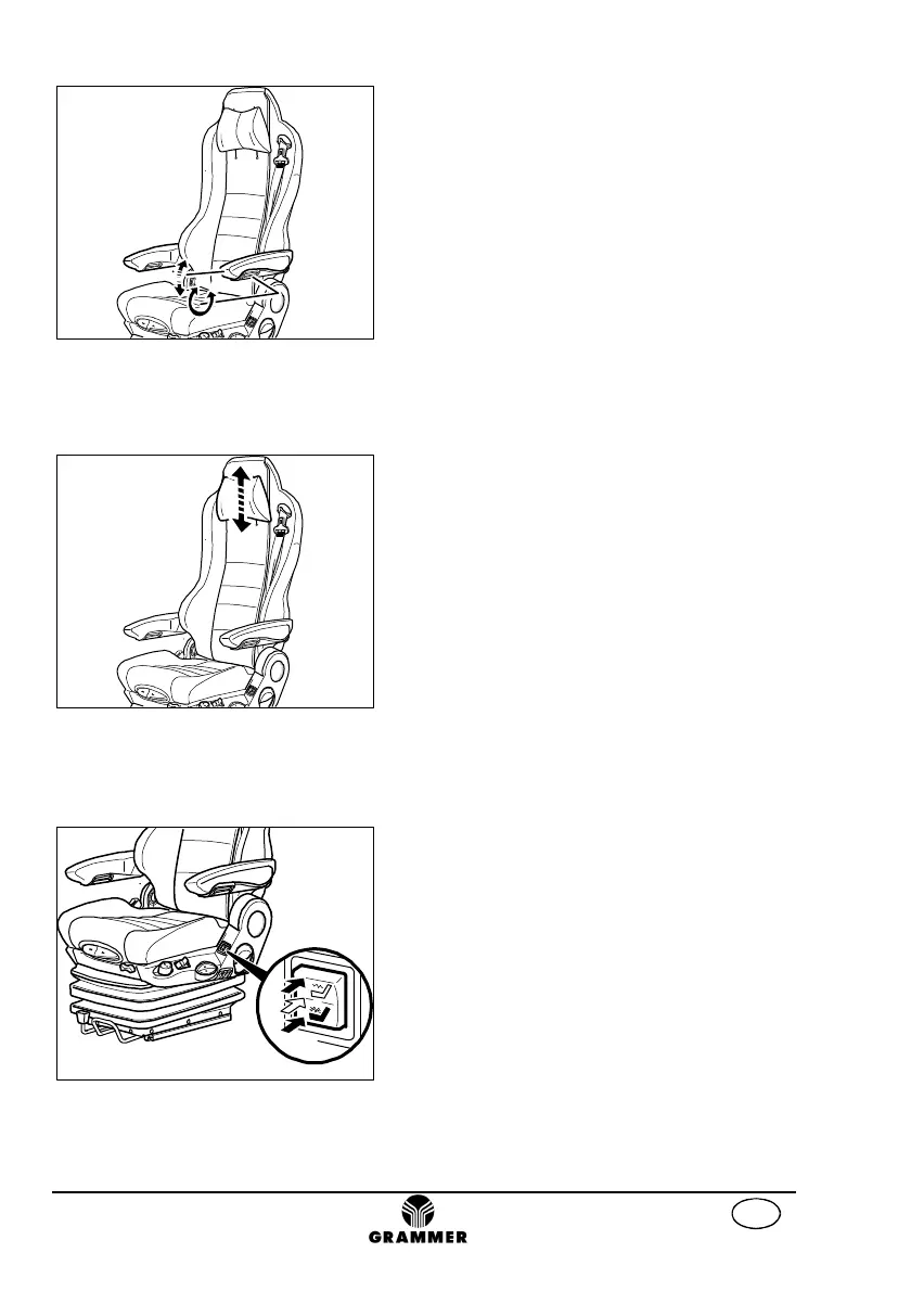 Armlehne vorn angehoben, bei Drehung nach