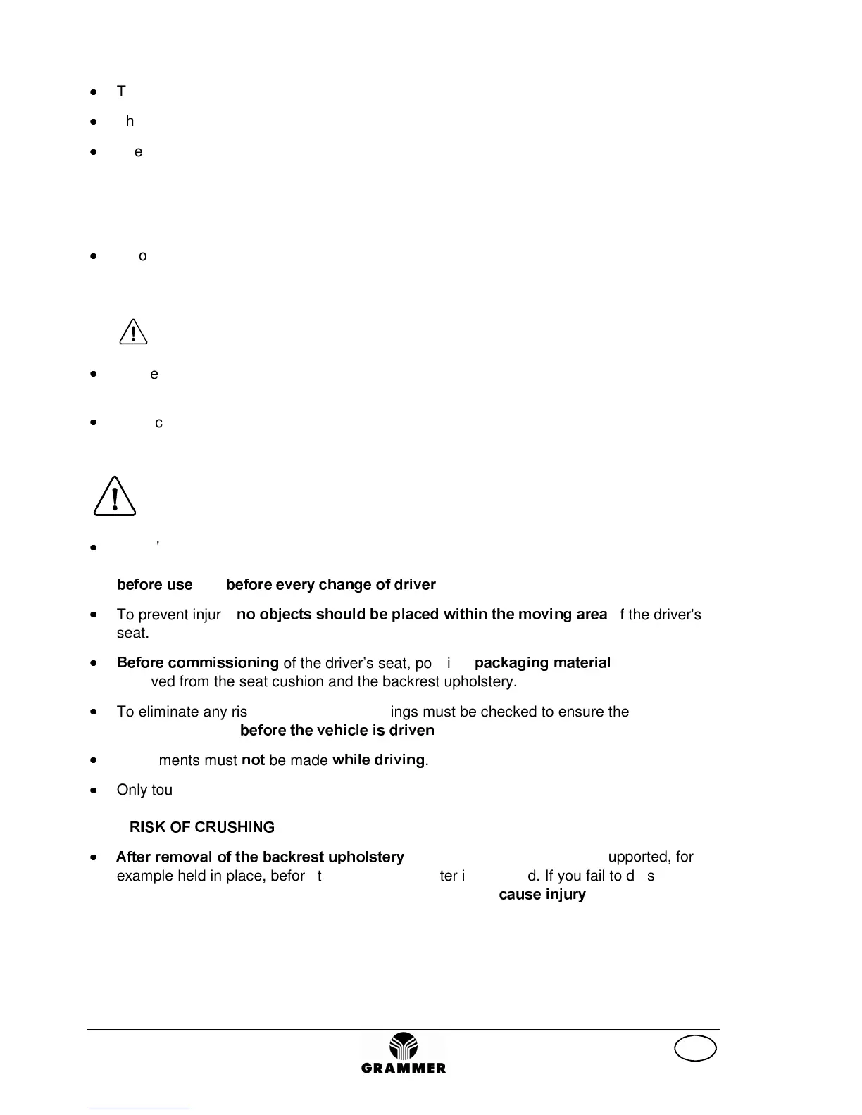 The national fitting regulations can be obtained from GRAMMER AG or from agencies of