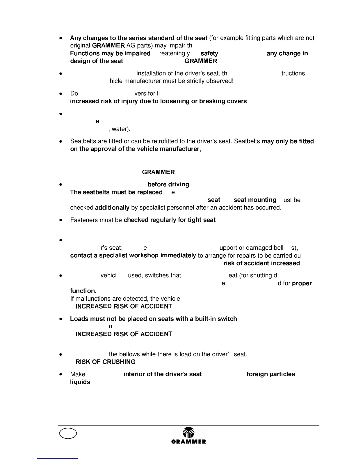 Before the vehicle is used, switches that might be in the seat (for shutting down
