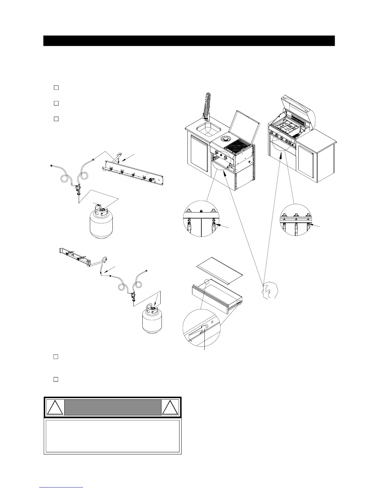 Never test for leaks with a flame. Prior to first use,