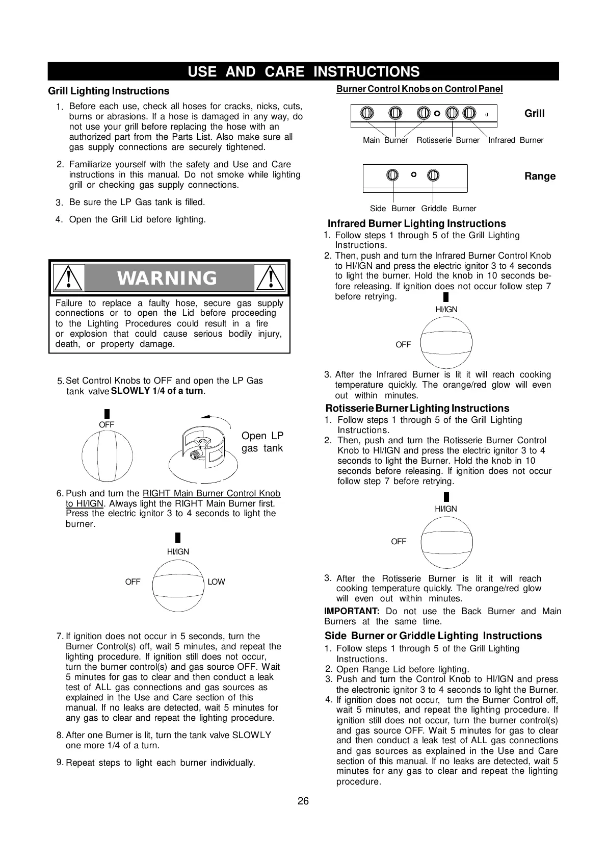 to HI/IGN. Always light the RIGHT Main Burner first.