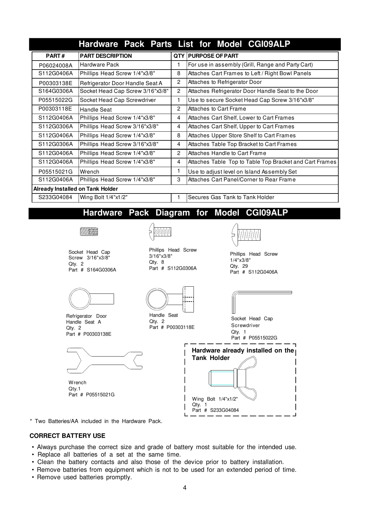 Hardware Pack 1 For use in assembly (Grill, Range and Party Cart)