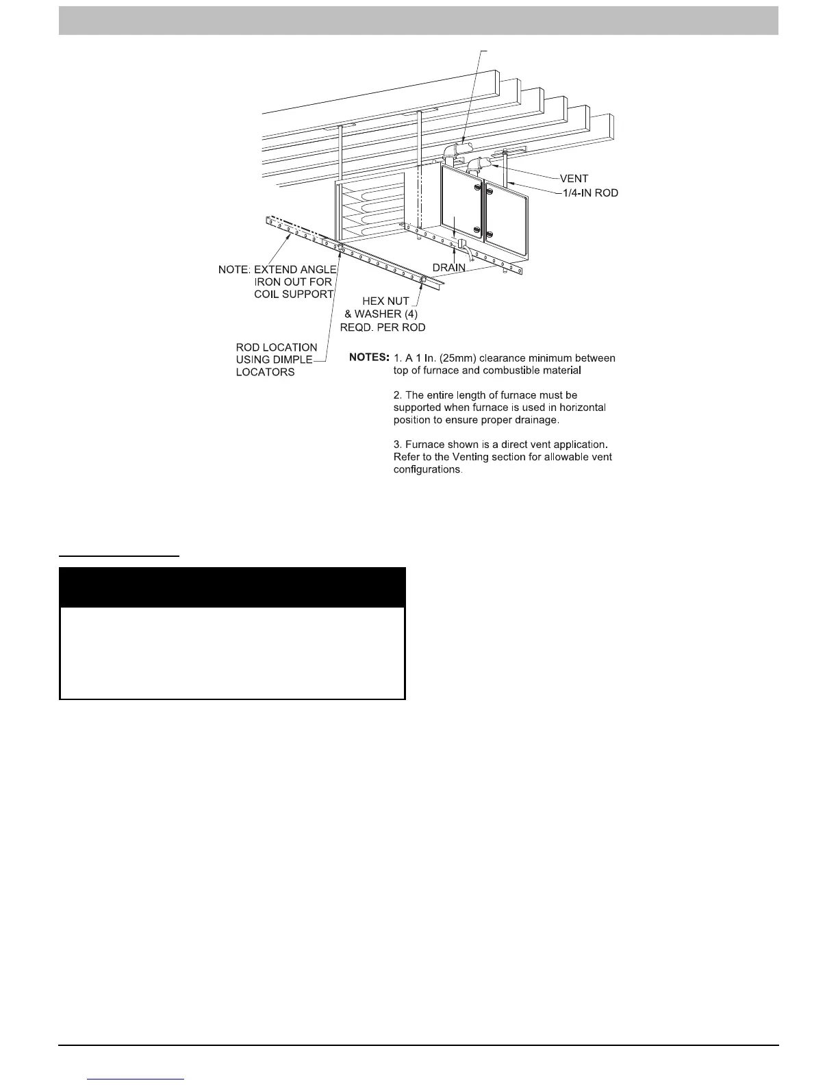 NOTE: Local codes may require a drain pan and condensate trap when a condensing furnace is installed over a finished ceiling.