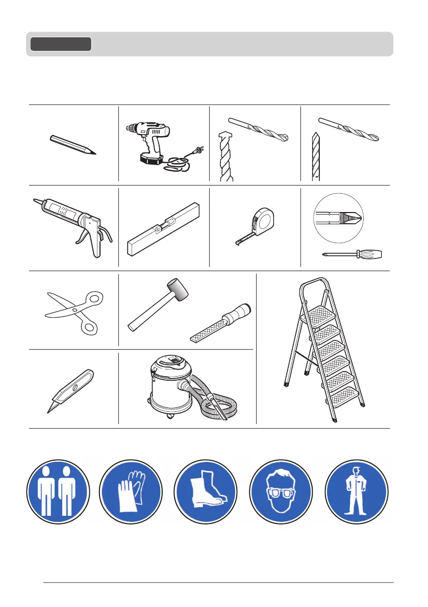 Equipment necessary for installation - NOT SUPPLIED