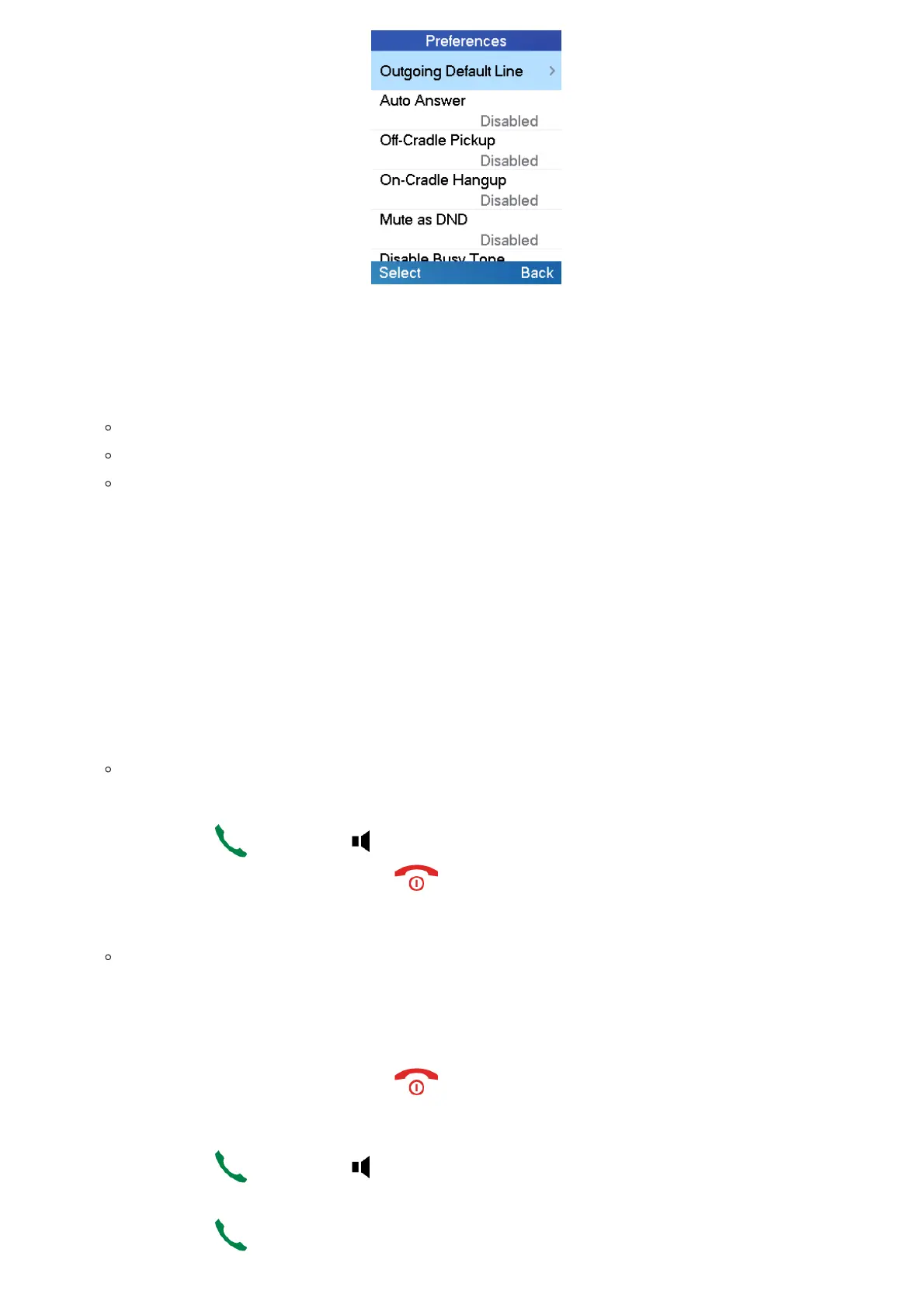 Headset mode: Press the off-hook key to dial out using a connected headset.