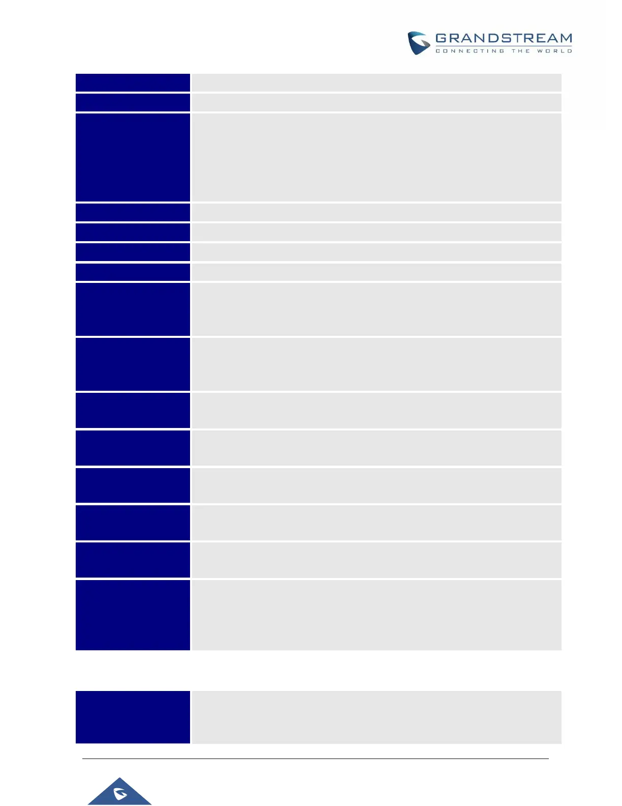 Table 4: GRP2603/GRP2603P Technical Specifications