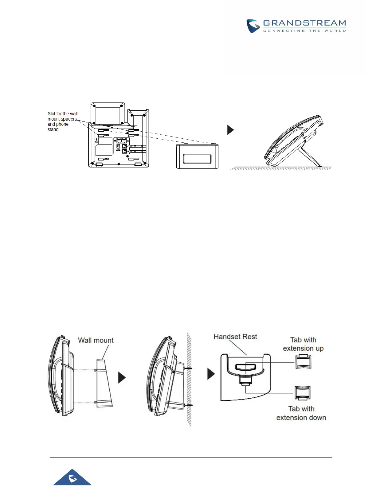 The GRP260X phones can be installed on the desktop using the phone stand or attached on the wall using