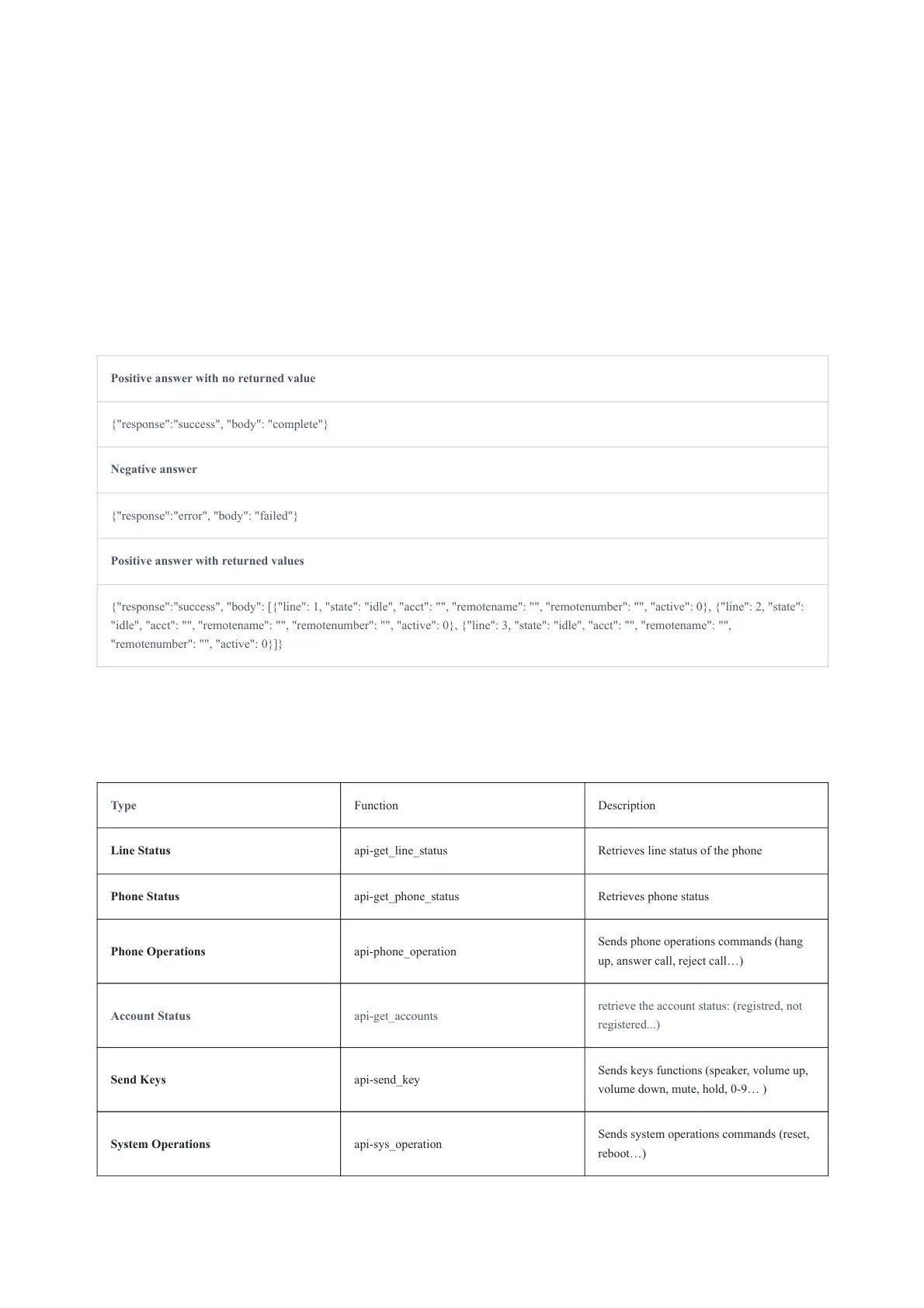 {"response":"success", "body": [{"line": 1, "state": "idle", "acct": "", "remotename": "", "remotenumber": "", "active": 0}, {"line": 2, "state":