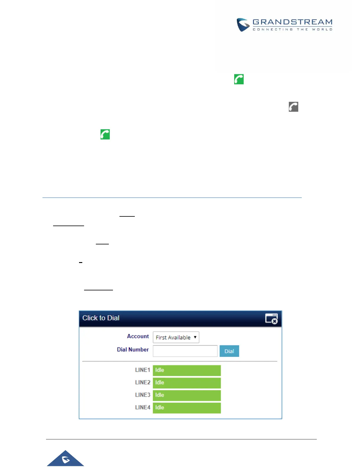 From GRP26XX Web GUI, users could dial out with Click-to-Dial feature on the top of the Web GUI.