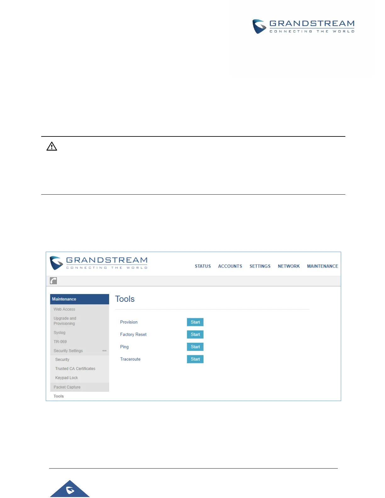 or print all the settings before you restore to the factory default settings. Grandstream is not responsible for