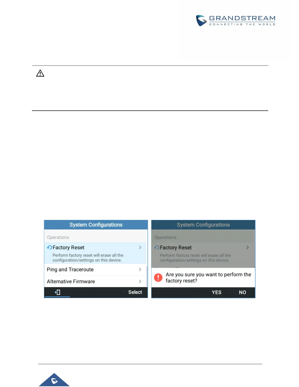 or print all the settings before you restore to the factory default settings. Grandstream is not responsible for