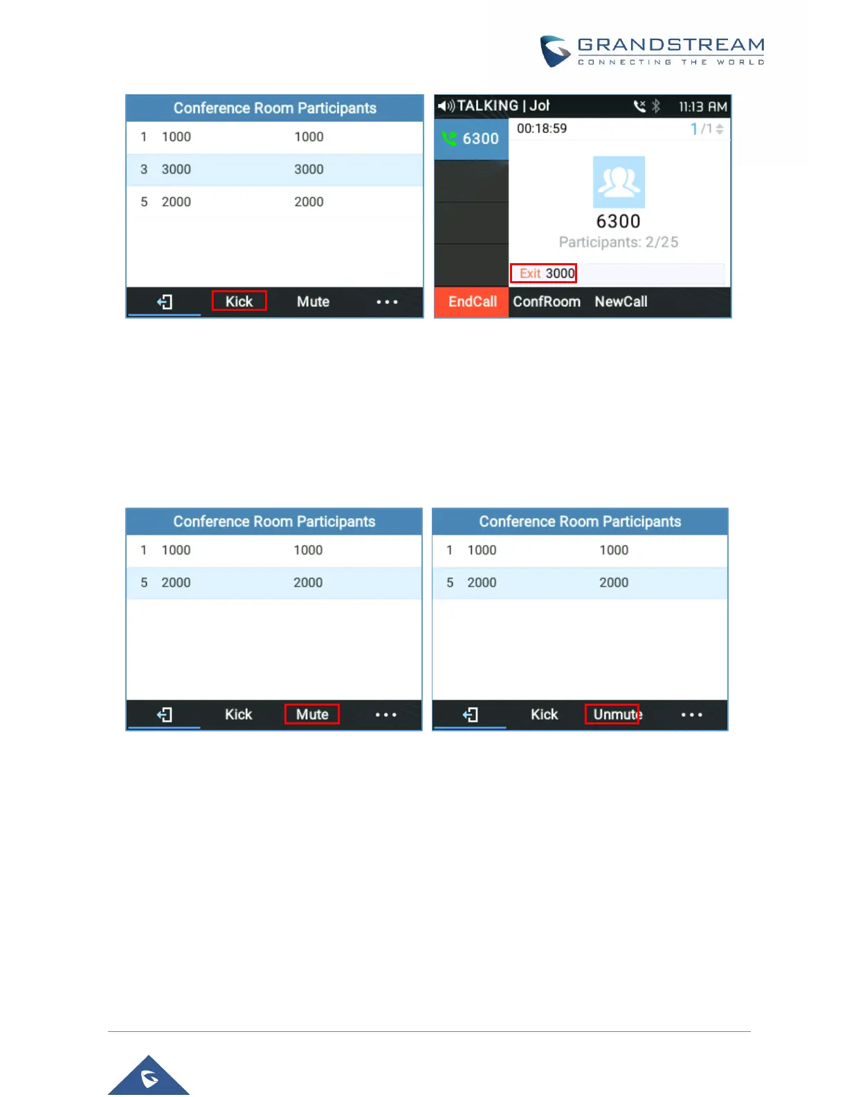 Select the user’s extension then press Mute. The phone will note the operation by displaying [Exit
