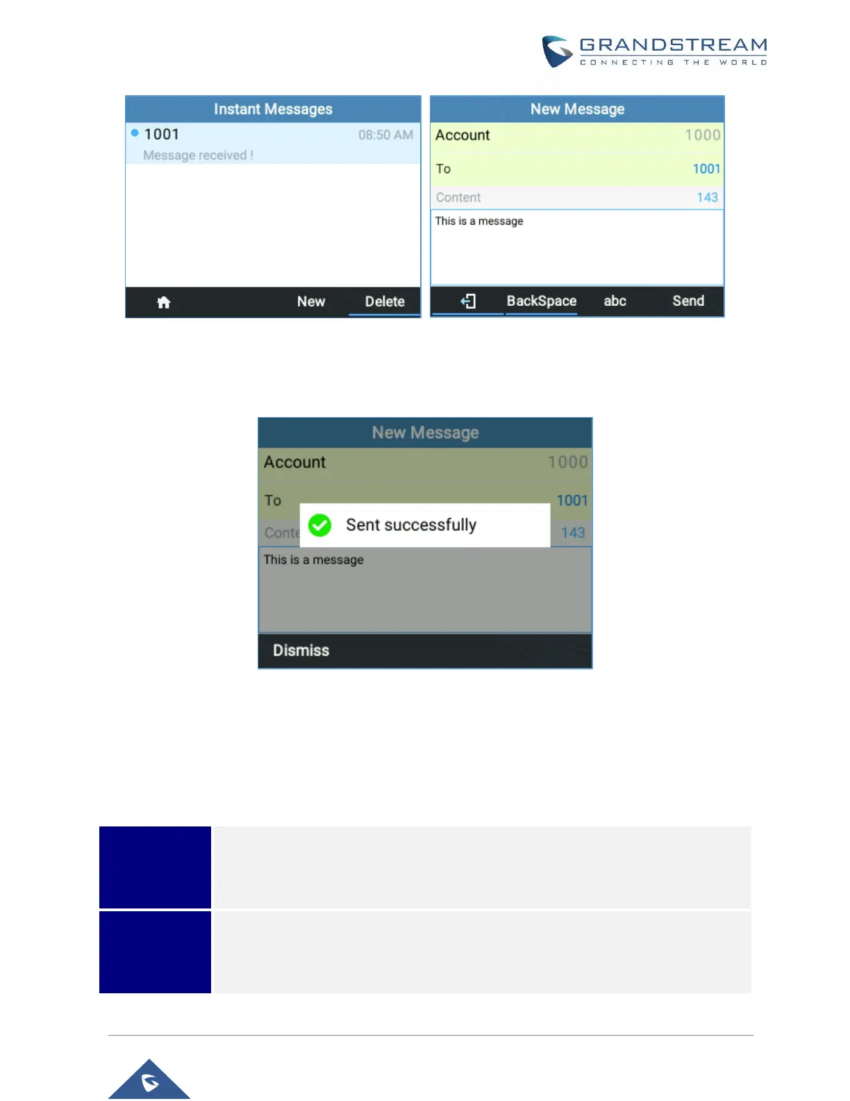 After pressing “Send” soft key, a “Sent successfully” message will pop up to indicate that the operation