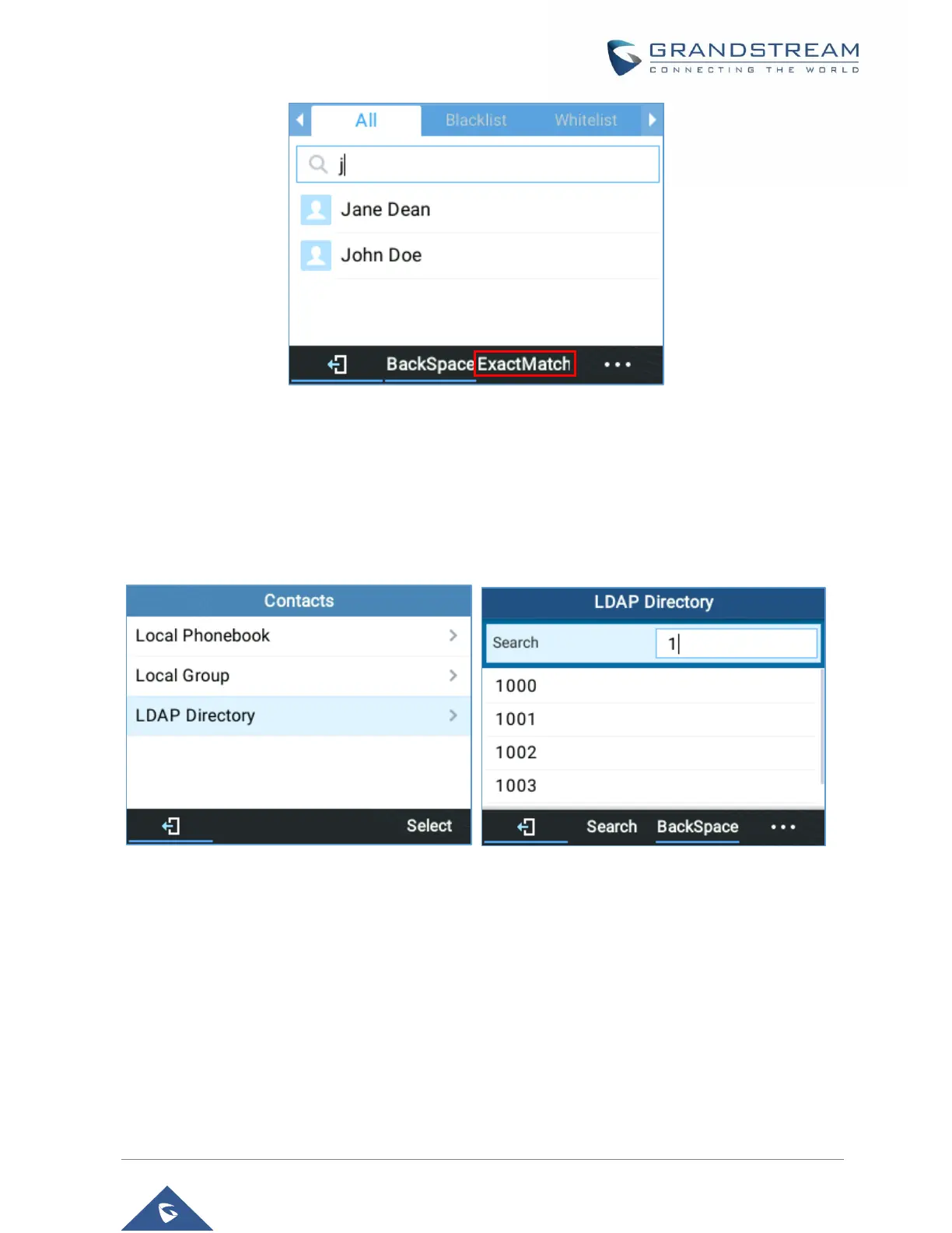 Users can search contacts on the LDAP server from Contacts Menu, under LDAP Directory. This option