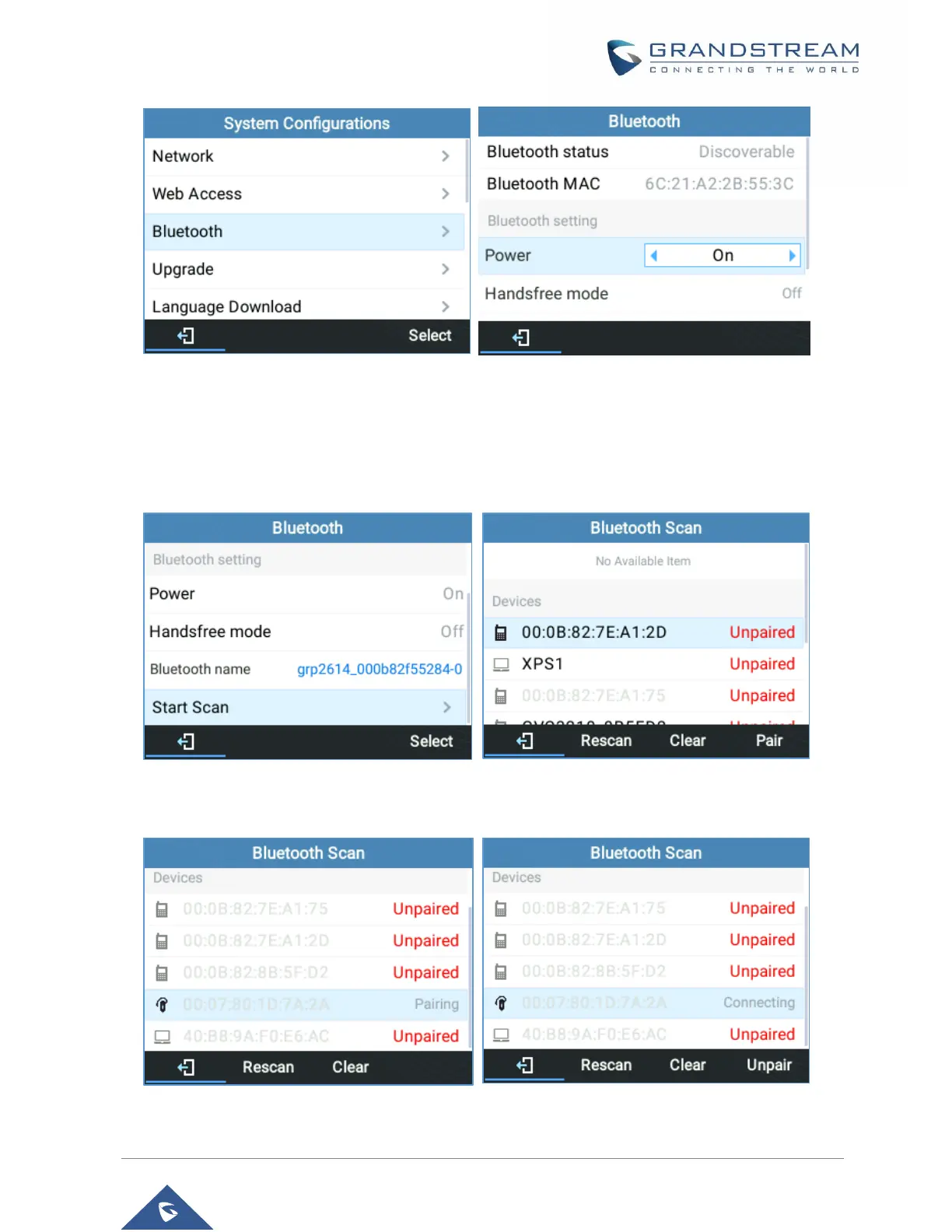 2. Choose a device then select “Pair”. The GRP2614 will then start the paring process