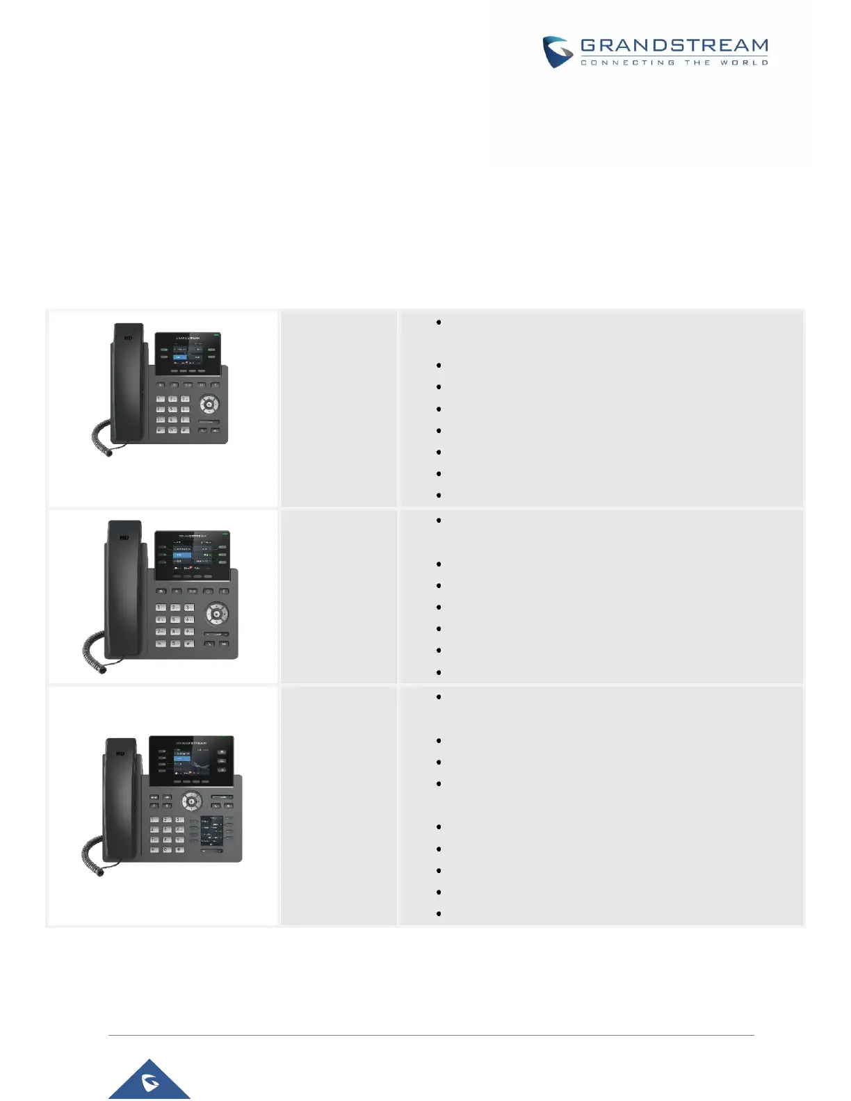 Table 1: GRP261X/GRP2624/GRP2634 Features in a glance