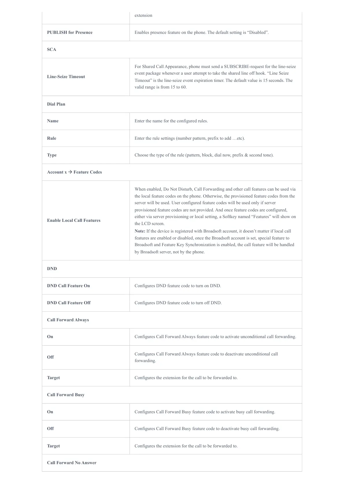 PUBLISH for Presence Enables presence feature on the phone. The default setting is “Disabled”.