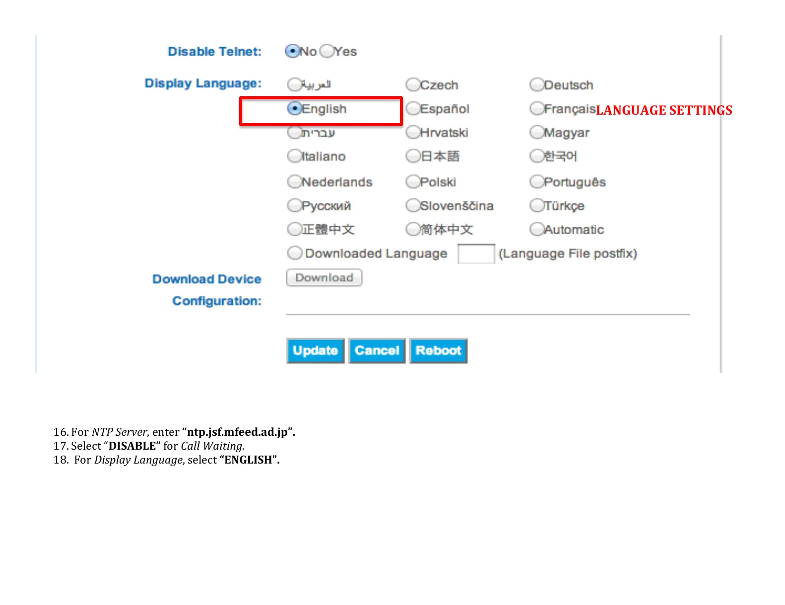 18. !For!Display$Language,!select!8($!1?&T7B!