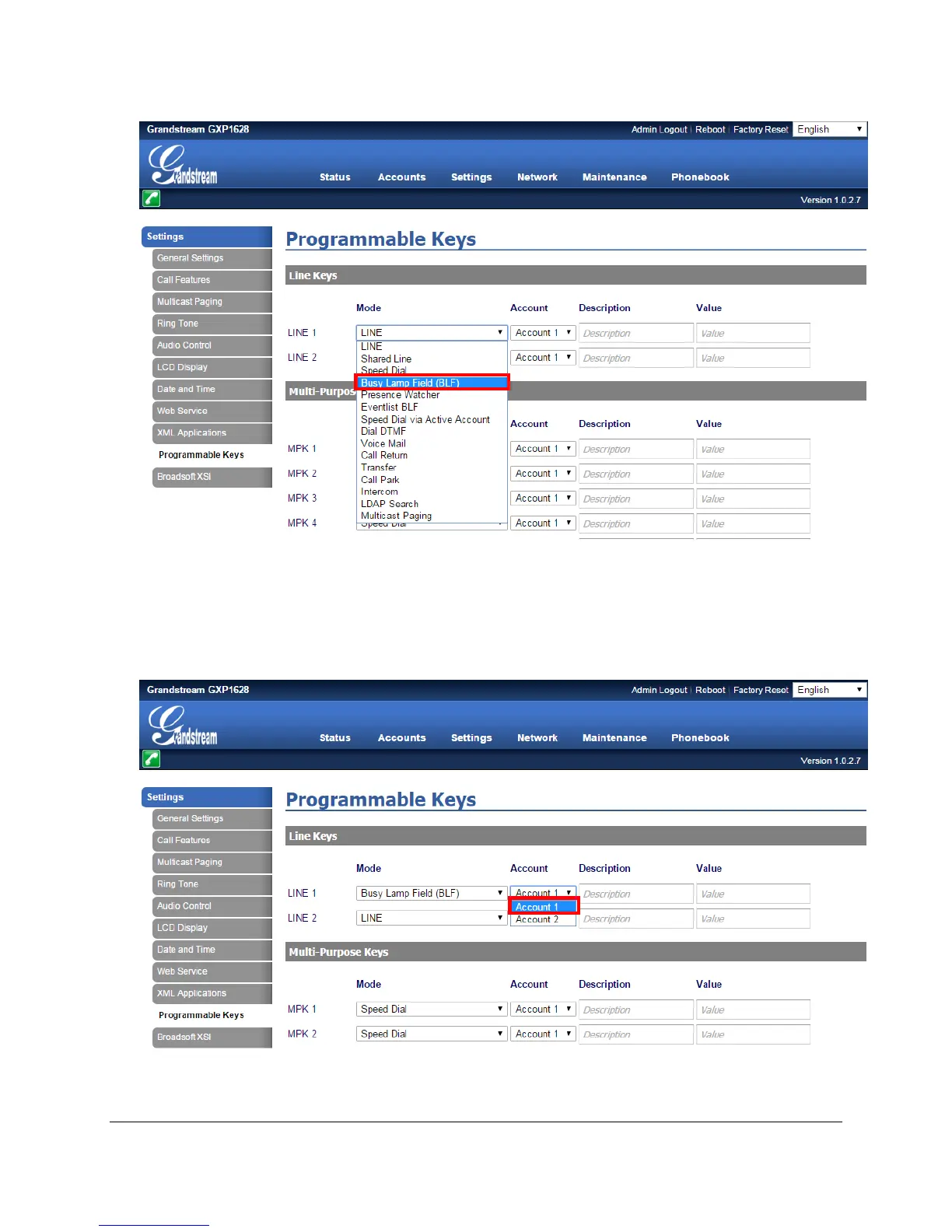 Figure 2: Configure Multi-Purpose Keys on Line Keys