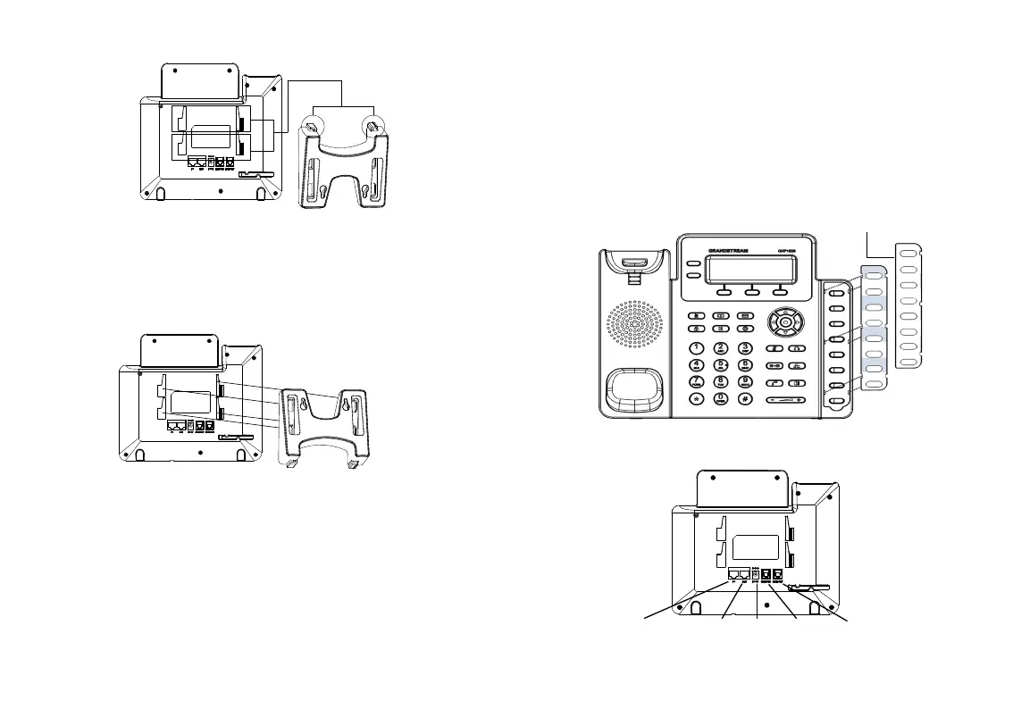 1. 话机背面有高矮两组插槽。用户可根据实际需要,将支架顶端的