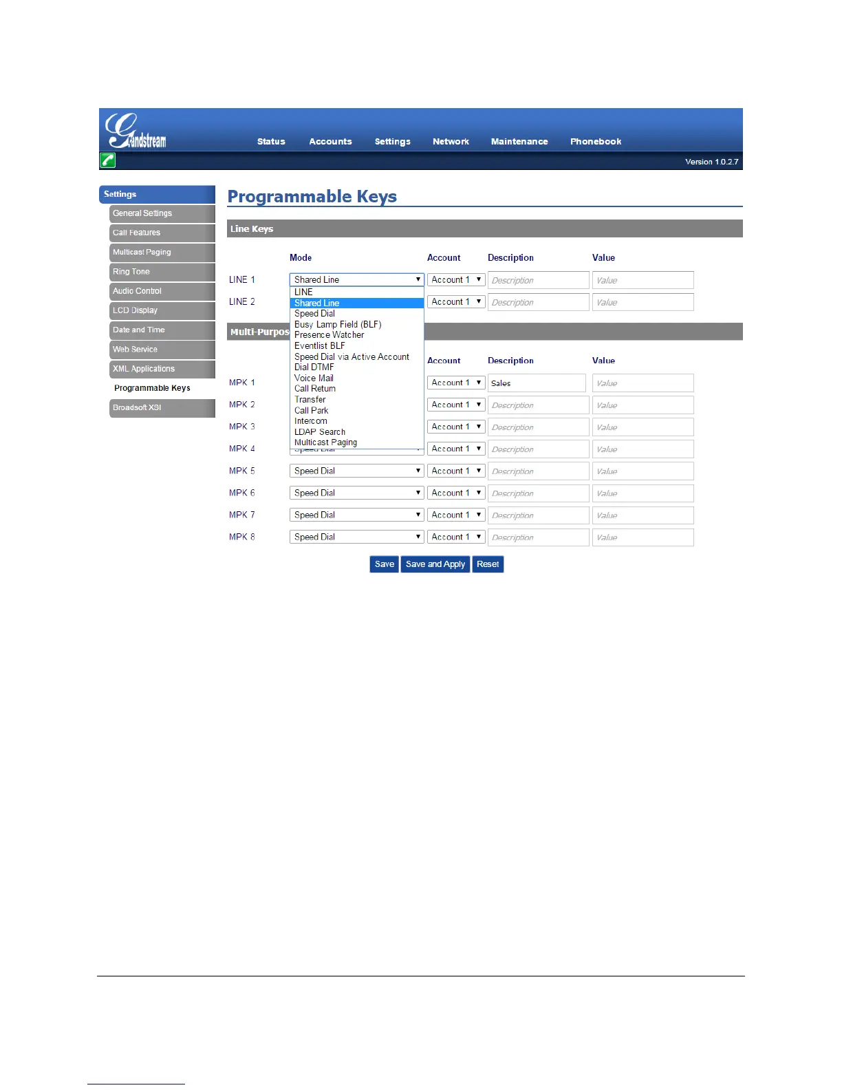 Figure 6: Choose Shared Line Option for Line Key Mode on Secondary Phone